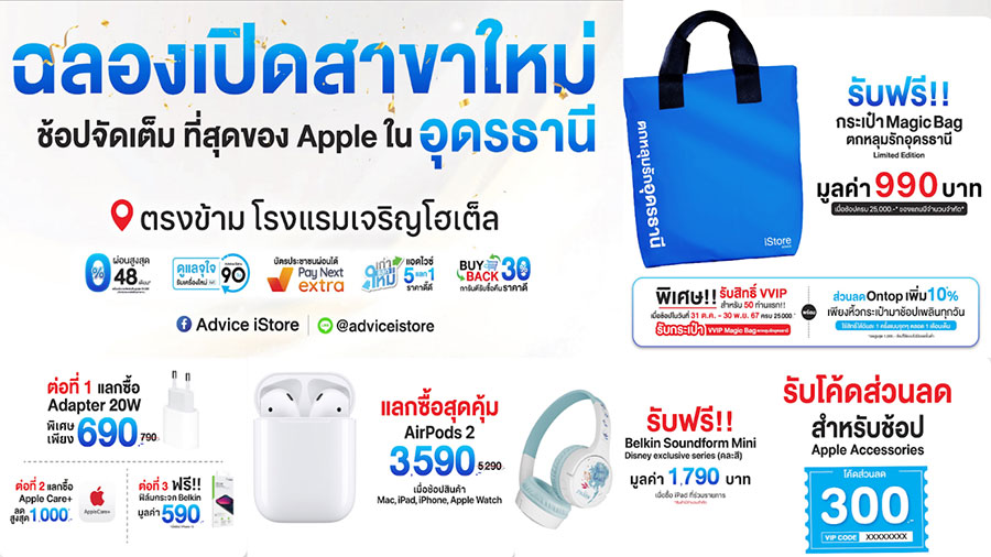 ไฮไลท์โปรโมชั่นต้อนรับการเปิด Advice iStore จ.อุดรธานี ระหว่างวันที่ 31 ตุลาคม – 30 พฤศจิกายน 2567