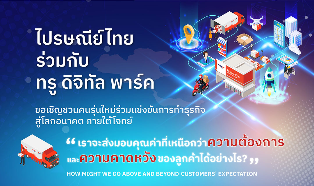เนื่องด้วย “บริษัท ไปรษณีย์ไทย จำกัด  ร่วมกับ ทรู ดิจิทัล พาร์ค จำกัด จัดการแข่งขัน Business Ideas Challenge การทำธุรกิจสู่โลกอนาคต และการให้บริการแก่ประชาชนที่เหนือกว่า ภายใต้โจทย์ “เราจะส่งมอบคุณค่าที่เหนือกว่าความต้องการ และความคาดหวังของลูกค้าได้อย่างไร?” (HOW MIGHT WE GO ABOVE AND BEYOND CUSTOMERS’ EXPECTATION) พร้อมรับเงินทุนสนับสนุนและเงินรางวัลมูลค่ารวมกว่า 400,000 บาท และสิทธิ์ประโยชน์เพื่อต่อยอดแนวคิดทางธุรกิจอีกมากมาย  โดยเปิดรับสมัครผู้ที่สนใจร่วมโครงการได้ตั้งแต่วันนี้ จนถึงวันที่ 17 มิถุนายน 2565