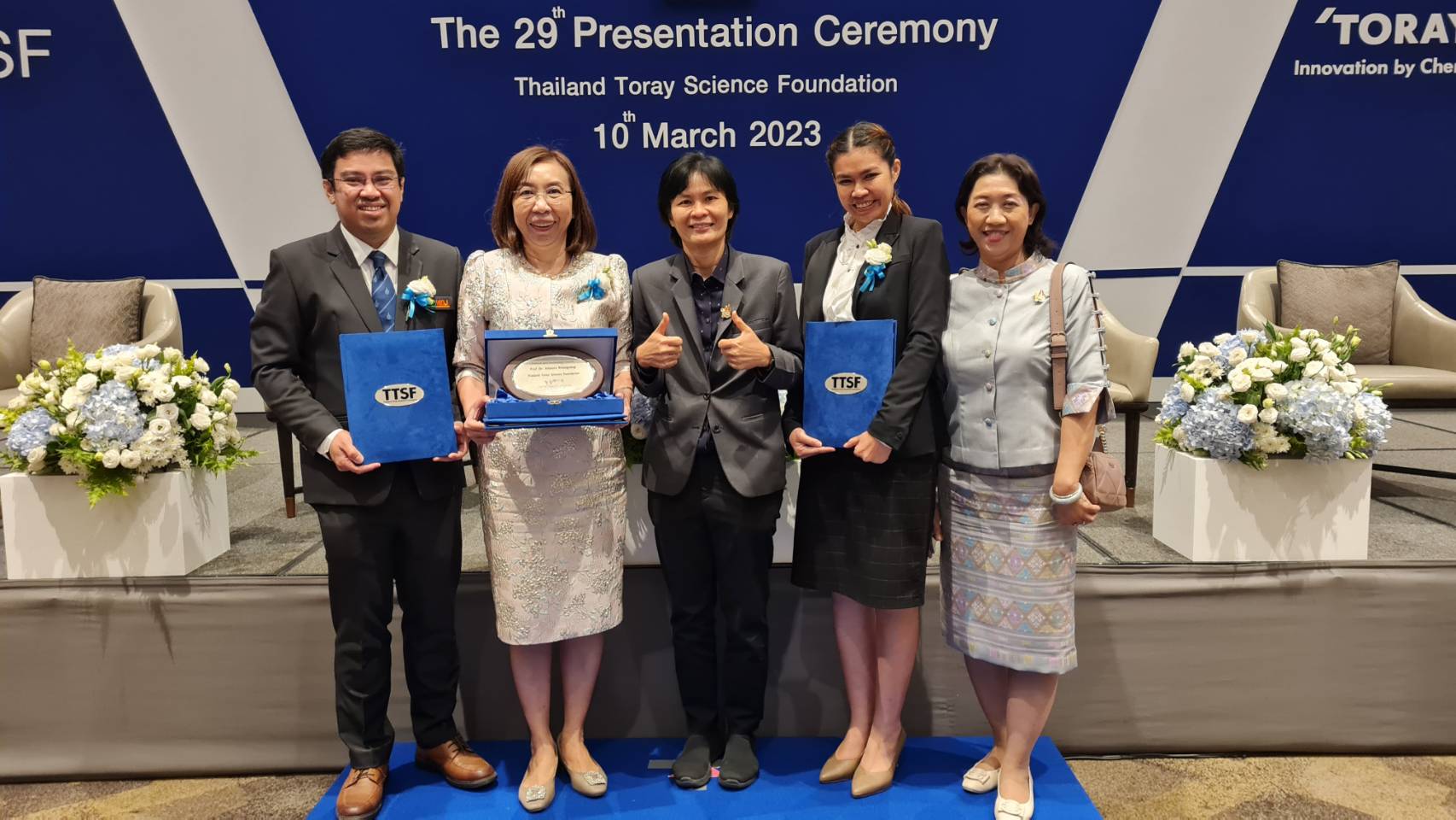 มูลนิธิโทเรเพื่อการส่งเสริมวิทยาศาสตร์ ประเทศไทย ได้จัดพิธีมอบรางวัลและเงินทุนช่วยเหลือการวิจัยด้านวิทยาศาสตร์และเทคโนโลยี ครั้งที่ 29 ณ โรงแรม แบงค็อกแมริออท เดอะสุรวงศ์ ได้รับเกียรติจาก ฯพณฯ พลเอกสุรยุทธ์ จุลานนท์ ประธานองคมนตรี เป็นประธานในพิธี พร้อมด้วย ฯพณฯ นายนะชิดะ คะสุยะ เอกอัครราชทูตญี่ปุ่นประจำประเทศไทย ศาสตราจารย์ ดร. ยงยุทธ ยุทธวงศ์ ประธานมูลนิธิฯ และนายอาคิฮิโระ นิคคาคุ ประธานบริษัทโทเรอินดัสตรีส์ อิงค์ (ประเทศญี่ปุ่น) ทีมนักวิจัยมหาวิทยาลัยขอนแก่นผู้มีความรู้ความสามารถ ศาสตราจารย์ ดร. อลิศรา เรืองแสง คณะเทคโนโลยี คว้ารางวัลวิทยาศาสตร์และเทคโนโลยี ประเภทบุคคล ครั้งที่ 29 และผู้ที่ได้รับทุนช่วยเหลือทางด้านวิจัยวิทยาศาสตร์และเทคโนโลยี ครั้งที่ 29 พ.ศ. 2565 ได้แก่ การวิจัยคุณสมบัติของแป้งข้าวสำหรับการดูดซึมและการย่อยที่ต่ำเพื่อการลดดัชนีน้ำตาล โดย ดร. ธิดารัตน์ มอญขาม คณะเกษตรศาสตร์ และการวิจัยผลของสารสกัดสมุนไพรพื้นบ้านต่อการยับยั้งกระบวนการเติมหมู่น้ำตาลบนโปรตีนในเซลล์มะเร็งตับ โดย ดร. จารุพงษ์ แสงบุญมี คณะแพทยศาสตร์ พร้อมทั้ง ศาสตราจารย์ธิดารัตน์ บุญมาศ รองอธิการบดีฝ่ายนวัตกรรมและวิสาหกิจ และ ผู้ช่วยศาสตราจารย์ ดร.อารยา เชาว์เรืองฤทธิ์ คณบดีคณะเทคโนโลยี ร่วมแสดงความยินดี ณ โรงแรม แบงค็อกแมริออท เดอะสุรวงศ์