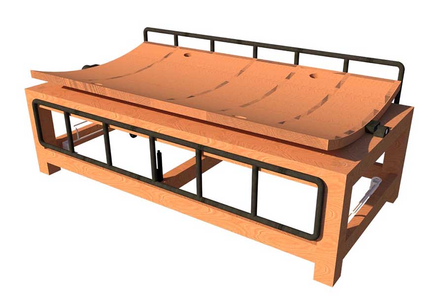 “ขนาดของเตียงที่ออกแบบ ในแรกเริ่มคิดที่จะพัฒนาเป็นขนาด S M L เพื่อให้สอดรับกับผู้ป่วยที่มีความแตกต่างกัน แต่เพราะเป็นช่วงแรกจึงพัฒนาเป็นขนาด L ทำให้พบข้อจำกัดการเคลื่อนย้ายเตียงเข้าสู่ภายในบ้าน ในระยะต่อมาจึงปรับขนาดลดลงเป็น 900×2 เมตร จากเดิมขนาด 1.2 x 2 เมตร มีต้นทุนการผลิตประมาณ 15,000-20,000 ไม้ โดยใช้วัสดุไม้แปรรูปที่หาซื้อได้จากร้านวัสดุก่อสร้างทั่วไป เช่น ไม้ยางพารา และไม้เนื้อแข็ง ซึ่งจะรับน้ำหนักผู้ป่วยได้มากถึง 200 กิโลกรัม” ผศ.ดร.สุรกานต์ กล่าว